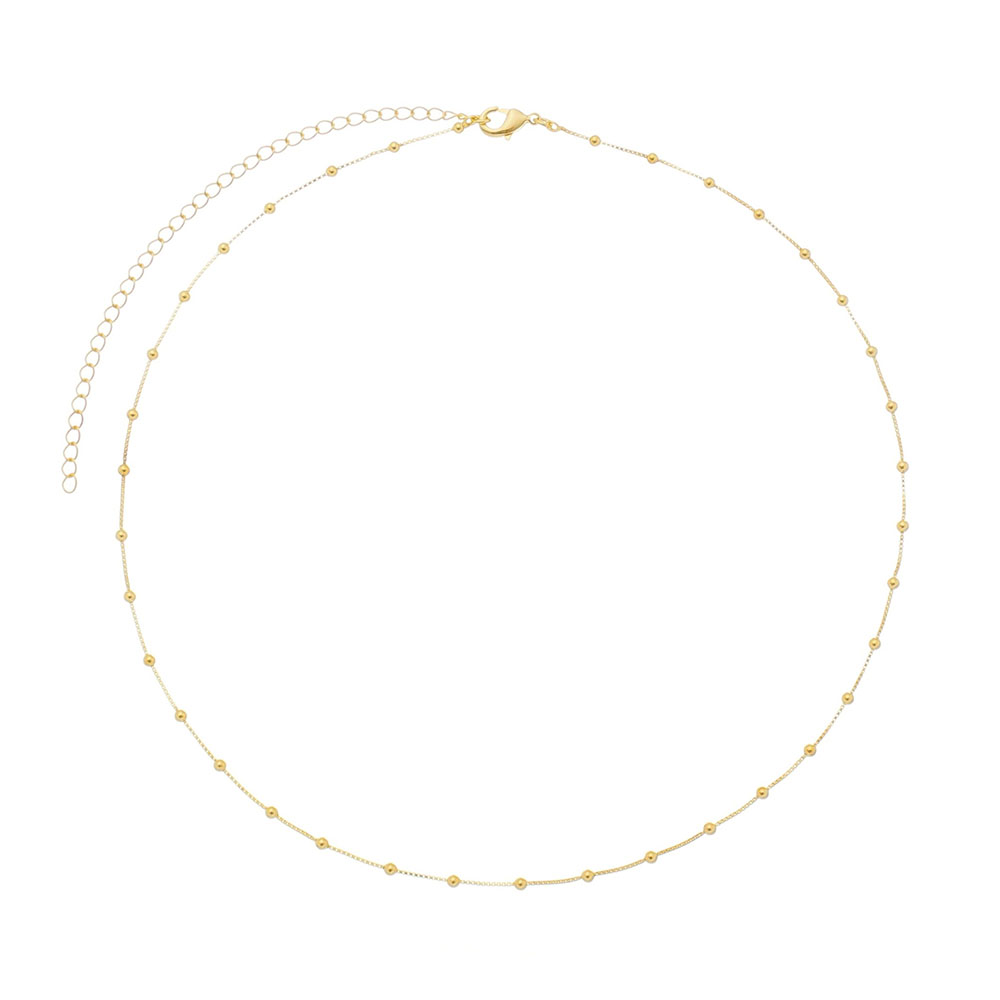 A Choker de Bolinhas no Ouro CH166-O é uma joia que une minimalismo e sofisticação. Seu design delicado com pequenas esferas douradas uniformemente espaçadas reflete a luz com suavidade, criando um brilho discreto e elegante que valoriza o colo.