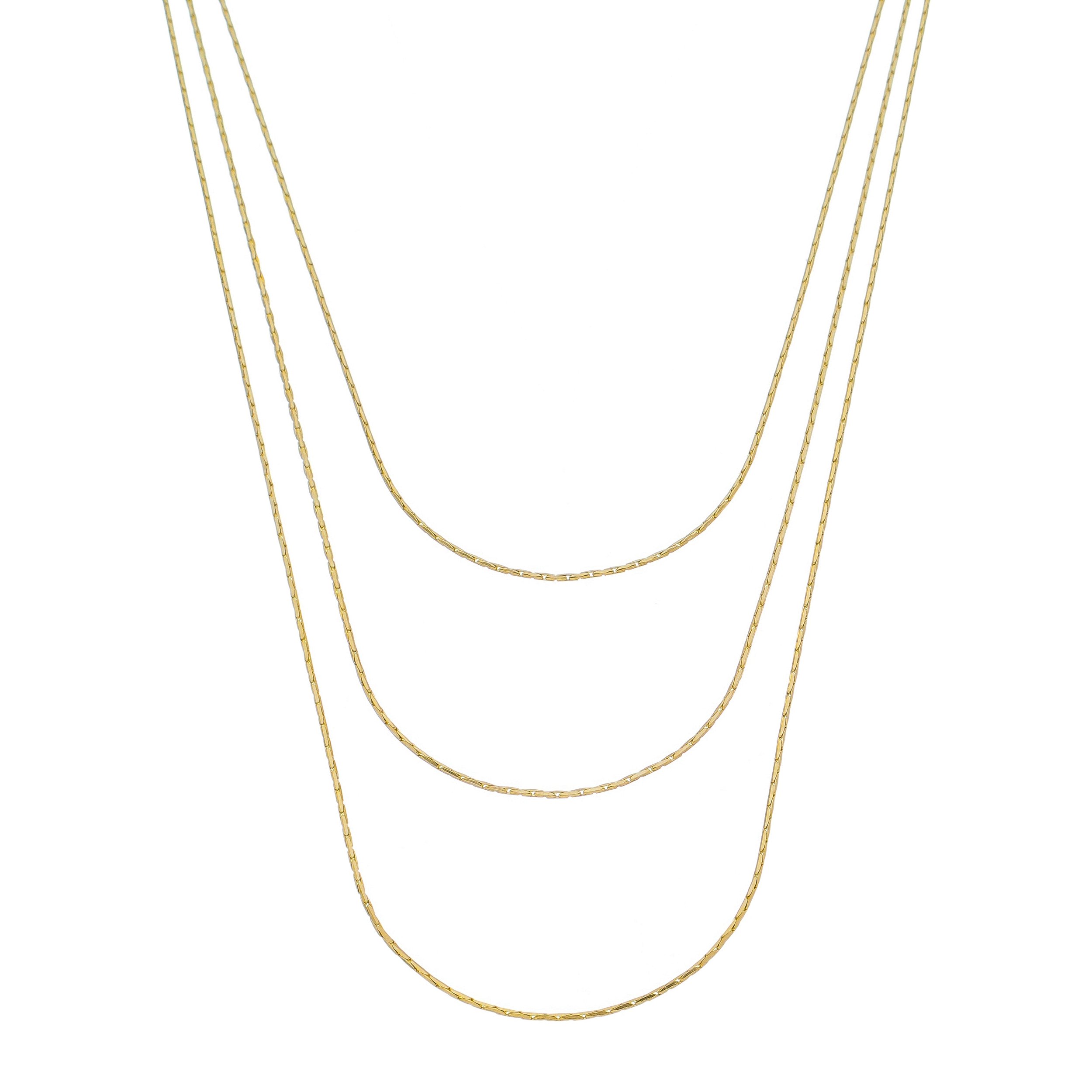 A Choker Trio de Corrente CH216-O é sinônimo de elegância moderna e versatilidade. Com três correntes douradas em alturas diferentes, o design cria um efeito de movimento e brilho suave que valoriza o colo com naturalidade e estilo.
